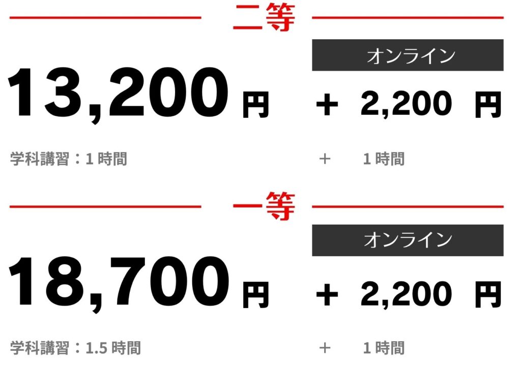 再交付講習:上記更新講習費に加えて+33,000円
